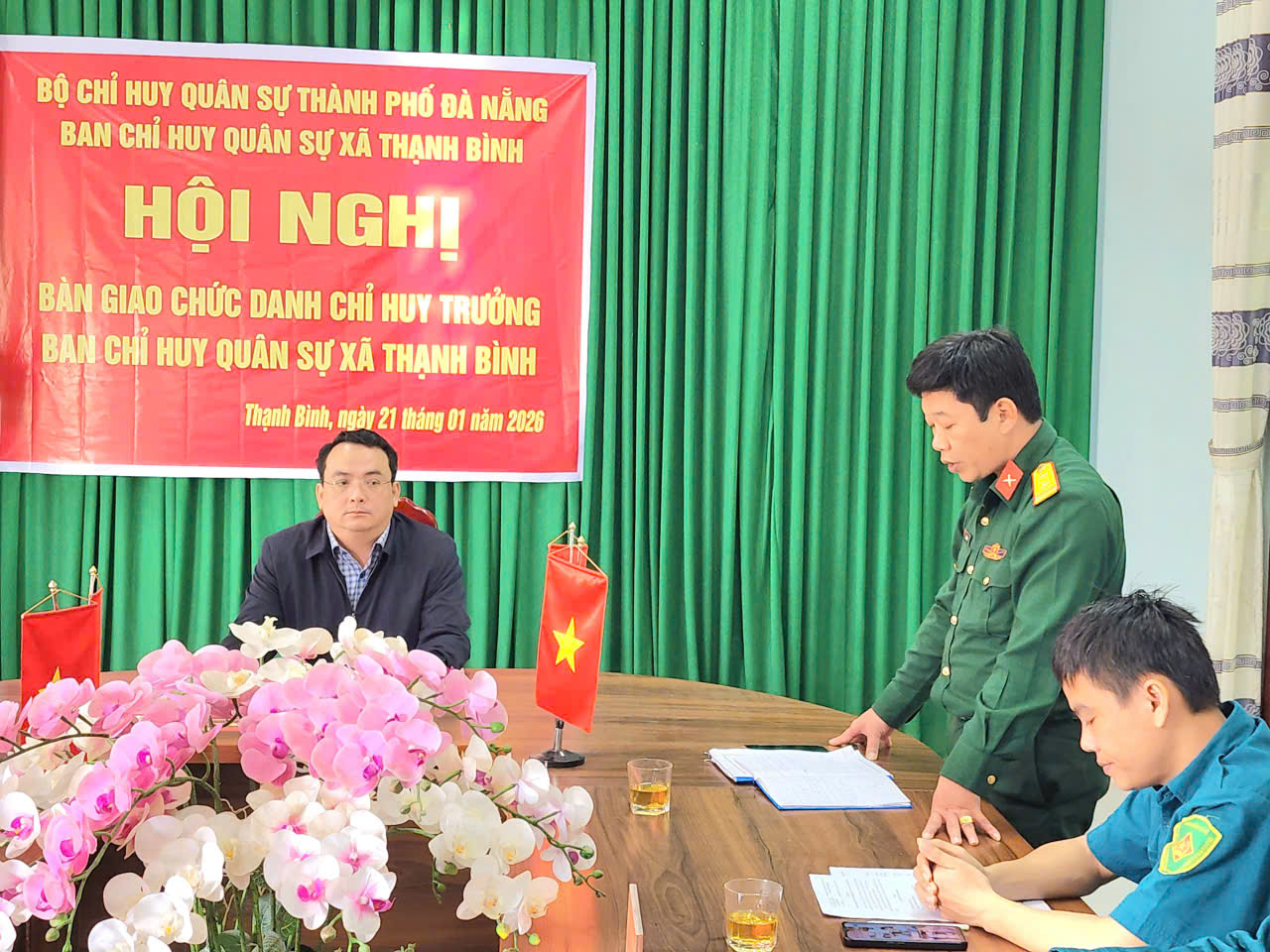 Thực hiện sự chỉ đạo của Bộ CHQS thành phố Đà Nẵng về việc bàn giao Chỉ huy trưởng Ban CHQS xã sau khi thực hiện chủ trương bổ nhiệm sĩ quan quân đội về đảm nhiệm chức danh Chỉ huy trưởng tại Ban CHQS xã. Sáng ngày 21/01/2026, tại hội trường Ban CHQS xã Thạnh Bình, được sự nhất trí của lãnh đạo Đảng ủy - UBND xã, Ban CHQS xã tổ chức Hội nghị bàn giao chức danh Chỉ huy trưởng Ban chỉ huy Quân sự xã Thạnh Bình.
