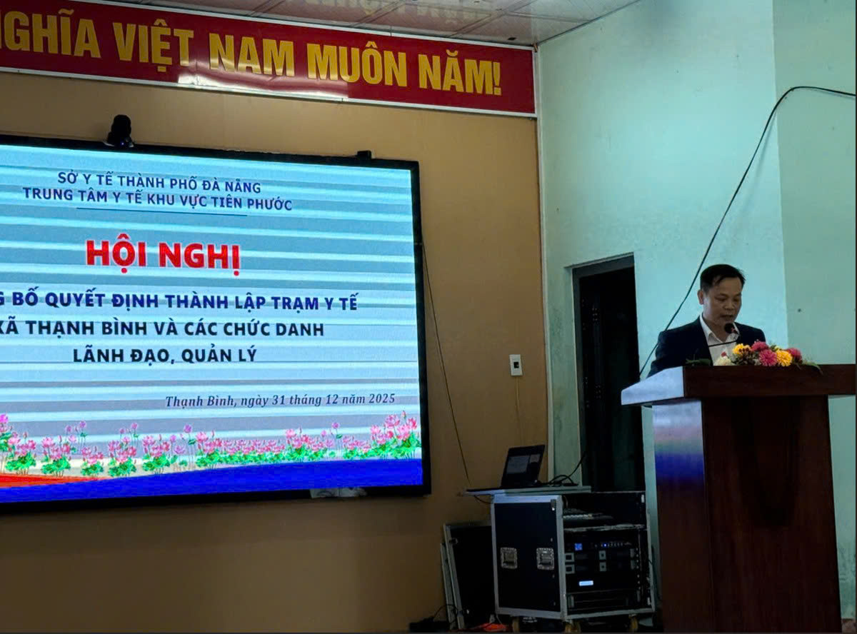 Ngày 31/12/2025, Trung tâm Y tế khu vực Tiên Phước đã tổ chức Hội nghị công bố Quyết định thành lập Trạm Y tế xã Thạnh Bình và các chức danh lãnh đạo, quản lý, theo chủ trương sắp xếp tổ chức bộ máy ngành y tế phù hợp với mô hình chính quyền địa phương 2 cấp. Tham dự hội nghị có đại diện Sở Y tế thành phố Đà Nẵng, lãnh đạo Trung tâm Y tế khu vực Tiên Phước; lãnh đạo Đảng ủy, HĐND, Ủy ban nhân dân xã Thạnh Bình cùng đội ngũ viên chức y tế được phân công công tác tại Trạm Y tế xã.