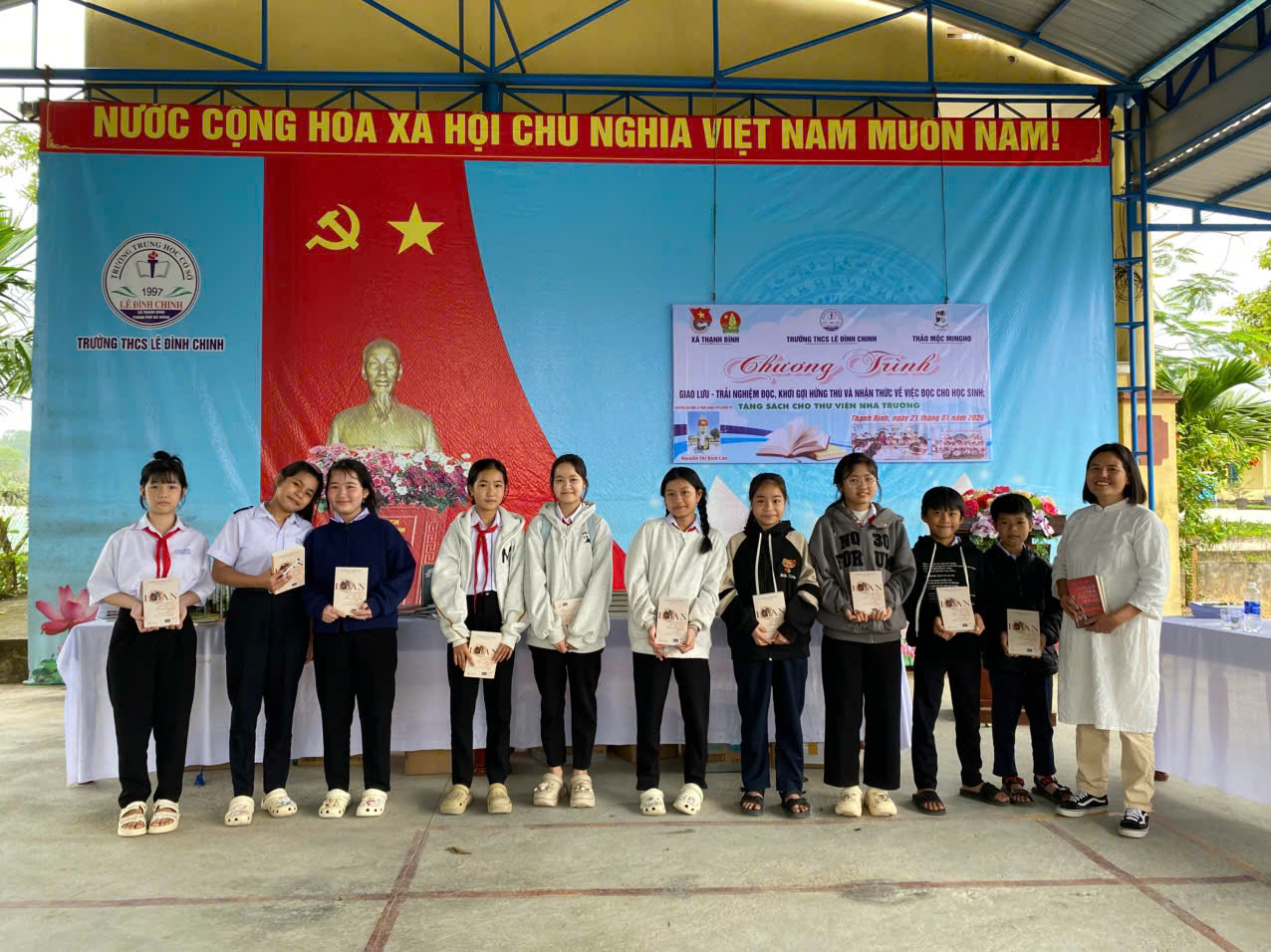 Nhằm thiết thực hưởng ứng phong trào xây dựng xã hội học tập, lan tỏa văn hóa đọc trong đoàn viên, thanh thiếu nhi; đồng thời tạo môi trường giáo dục lành mạnh, bổ ích cho học sinh trên địa bàn, trong thời gian từ ngày 21-22/01/2026, Đoàn Thanh niên xã, Hội đồng đội xã Thạnh Bình phối hợp các trường và đơn vị tài trợ thảo mộc Mingho đã tổ chức Chương trình giao lưu – trải nghiệm đọc, khơi gợi hứng thú và nâng cao nhận thức về việc đọc sách cho học sinh, kết hợp trao tặng sách cho thư viện nhà trường tại 03 trường học trên địa bàn, gồm: Trường Tiểu học Tiên Lộc, Trường THCS Lê Đình Chinh và Trường Tiểu học Tiên An.