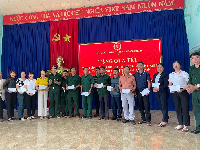Cũng trong dịp này Hội CCB xã Thạnh Bình đã tổ chức tặng quà cho các đồng chí chi hội trưởng, tổ trưởng tổ tiết kiệm & vay vốn trên địa bàn xã nhân dịp tết nguyên đán Bính Ngọ năm 2026 với 40 xuất quà, mỗi xuất 200.000đ với tổng số tiền là 8.000.000đ./.