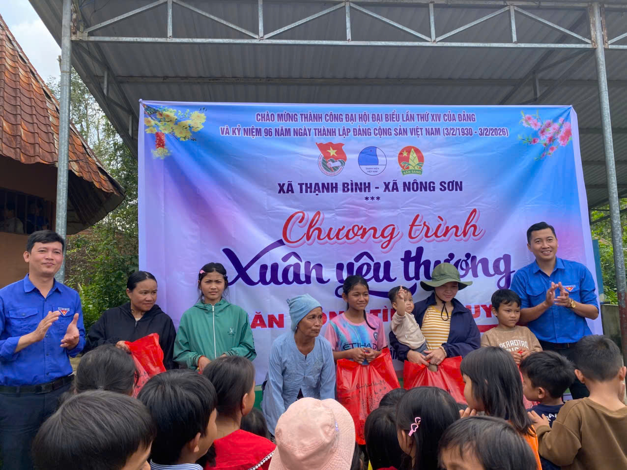 Nhằm phát huy tinh thần xung kích, tình nguyện vì cộng đồng của đoàn viên, thanh niên và chăm lo cho thiếu nhi, người dân có hoàn cảnh khó khăn nhân dịp Tết Nguyên đán và chào mừng thành công Đại hội đại biểu  lần thứ XIV của Đảng và kỷ niệm 96 năm ngày thành lập Đảng Cộng sản Việt Nam (03/02/1930-03/02/2026). Vào ngày 31/01/2025 Đoàn xã Nông Sơn phối hợp với Đoàn xã Thạnh Bình tổ chức chương trình “Xuân yêu thương – Khăn hồng tình nguyện” với nhiều hoạt động ý nghĩa, thiết thực.