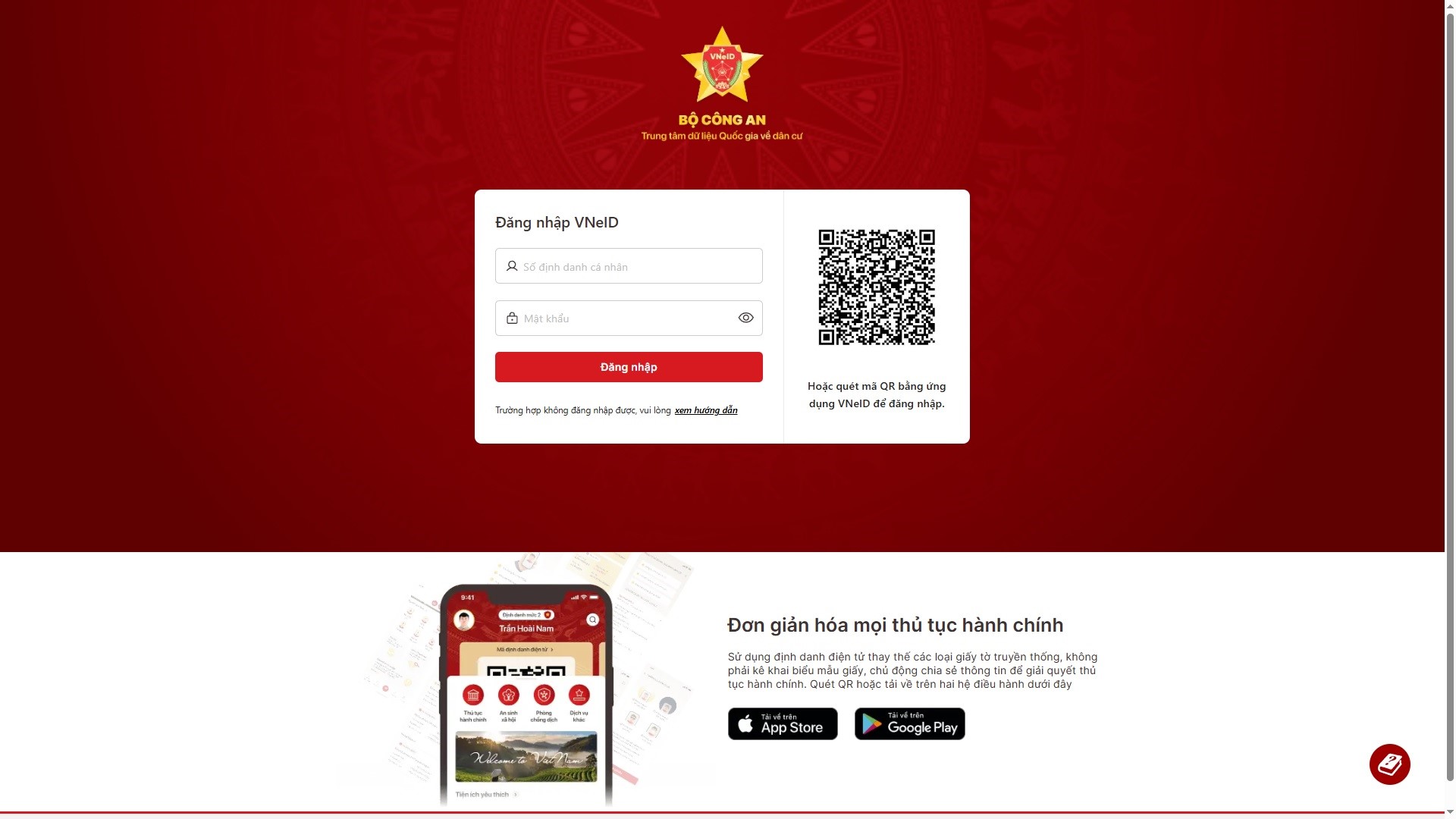 - Bước 3: Đăng nhập bằng tài khoản VneID: nhập số căn cước công dân, mật khẩu, mã OPT gửi về số điện thoại đăng ký VneID. Hoặc sử dụng mã quét trên ứng dụng VneID để quét mã QR đăng nhập.